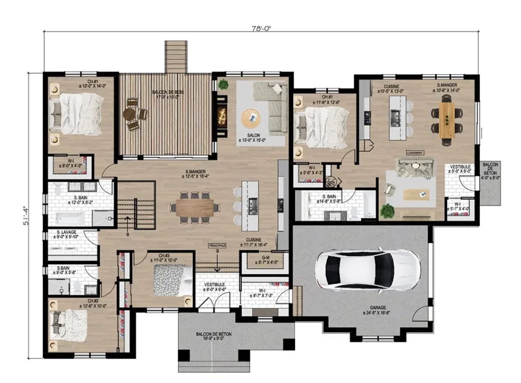 Le modèle de maison neuve Falabella de style Farmhouse intergénérationnelle offre une maison de 3 chambres, 2 salle de bains, 1 salle de lavage et un garage ainsi qu’un intergénération de 1 chambre et 1 salle de bain. Nos modèles peuvent être construits dans les Laurentides, dans les secteurs de Ste-Sophie, St-Hippolyte, St-Colomban et Mirabel, ou sur votre propre terrain. Voir les disponibilités par projet.