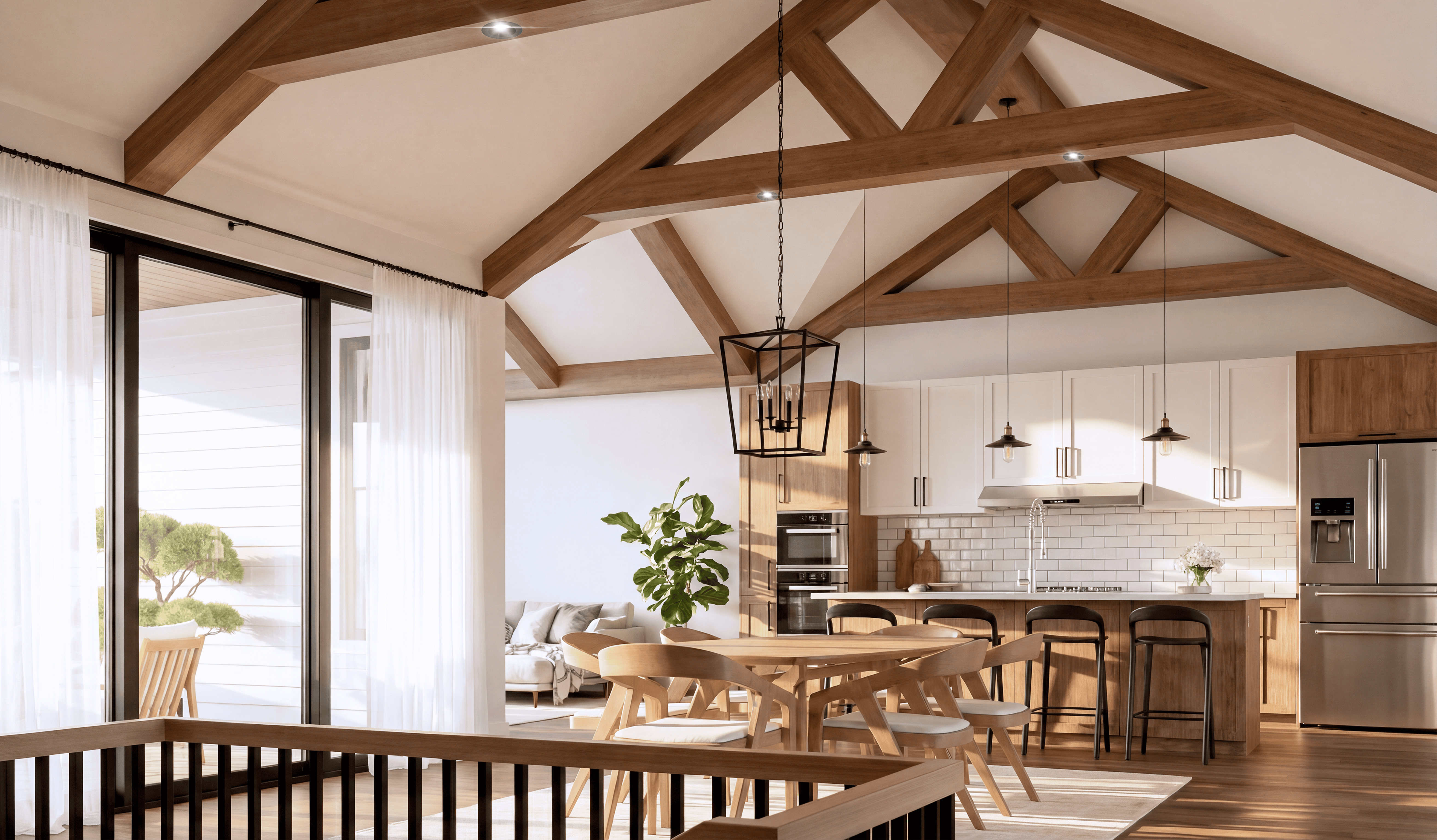 Le modèle de maison neuve Falabella de style Farmhouse intergénérationnelle offre une maison de 3 chambres, 2 salle de bains, 1 salle de lavage et un garage ainsi qu’un intergénération de 1 chambre et 1 salle de bain.