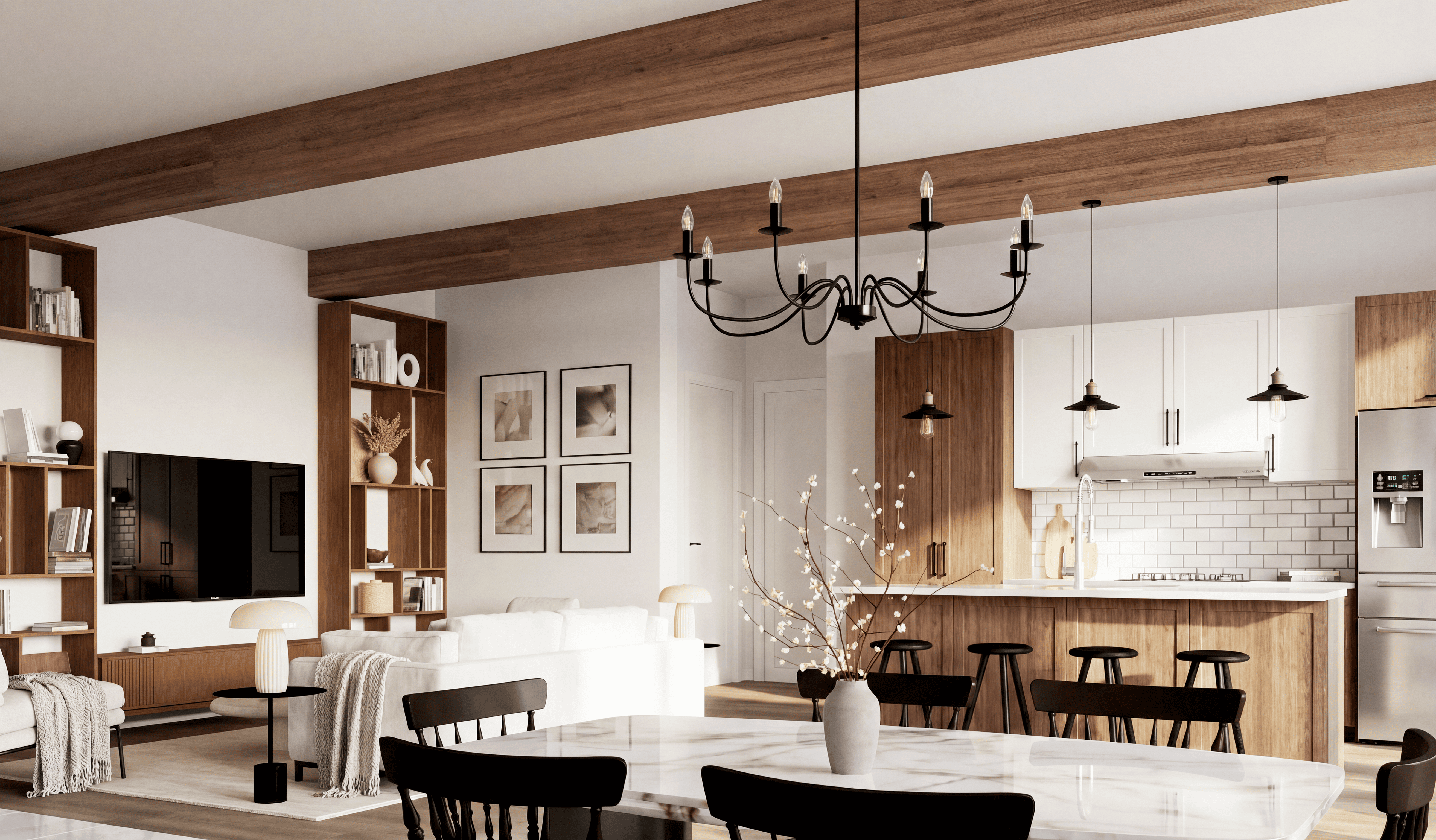 Le modèle de maison neuve Falabella de style Farmhouse intergénérationnelle offre une maison de 3 chambres, 2 salle de bains, 1 salle de lavage et un garage ainsi qu’un intergénération de 1 chambre et 1 salle de bain. Nos modèles peuvent être construits dans les Laurentides, dans les secteurs de Ste-Sophie, St-Hippolyte, St-Colomban et Mirabel, ou sur votre propre terrain. Voir les disponibilités par projet.